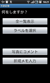 こんな感じです。アプリを起動すると次の図が表示されます。これがホーム画面。シンプルなテキストメモを作成する場合「新規メモ入力」をタップして文字を入力します。「写真にコメント」をタップすると端末内で撮影した写真に対してコメントを付け加えることができます。
