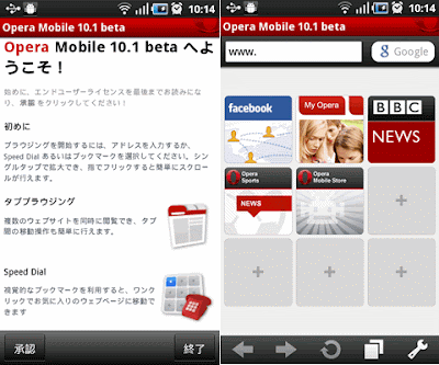 「Opera Mobile 10.1 for Android beta」がダウンロード可能(Androidマーケットに公開されました)